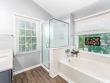 Natural lightFenced dog runRemodeled primary bathGranite counters in kitchenSpacious yardNew vinyl windowsBeautiful refinished hardwood floors